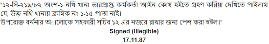 11. In the official file referred to in the note-sheet quoted above, a notice to show cause dated 3.7.85, a copy of the order of temporary injunction dated 8.7.85 passed by the Sub-Judge, 2nd Court, Dhaka and the hand written copy of the written statement and the written Objection by the defendant nos. 2-4 in Title Suit No. 894/85 make up pages 1-15, although the first notice bears page mark ‘17’ which has been crossed out and renumbered as page ‘1’. Moreover, the typed copy of the very same written statement has been appended in the file at pages 16-19 and again at pages 30-33.